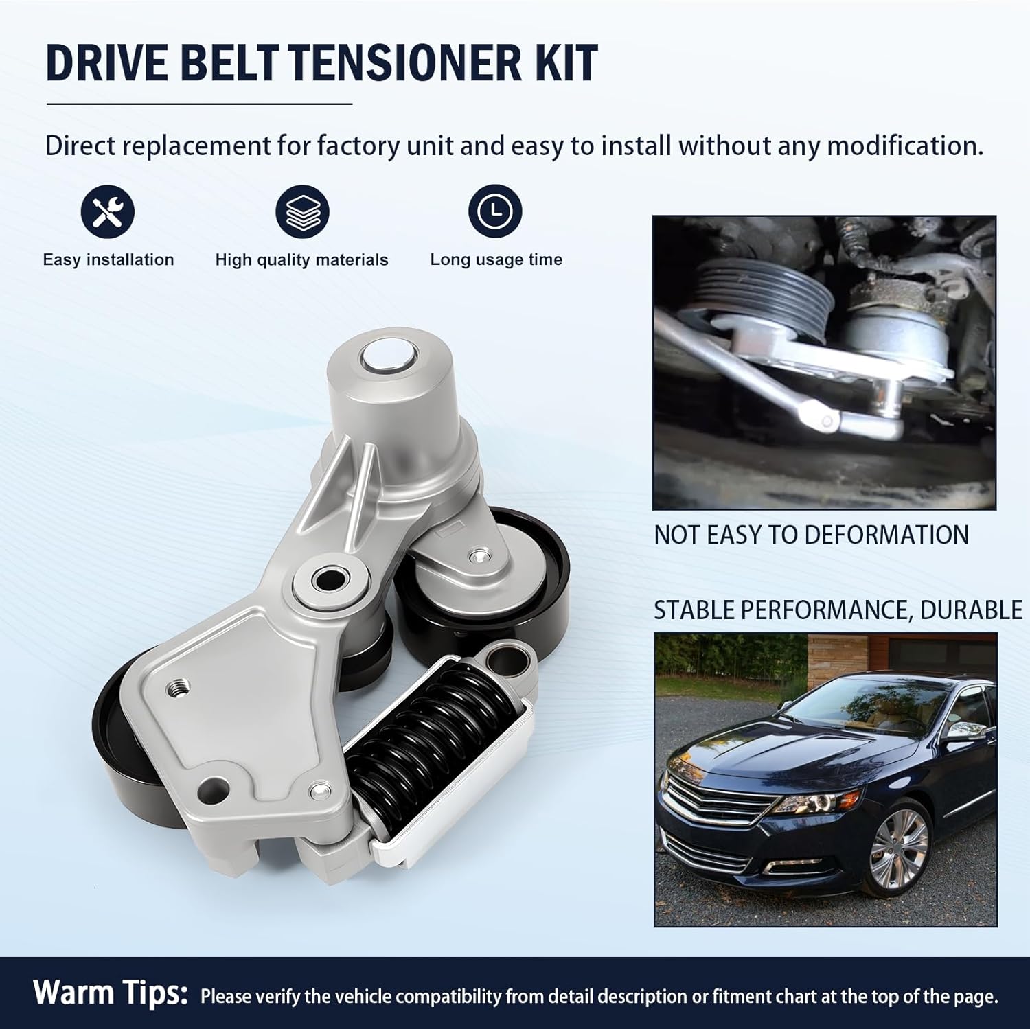 Specifications: Product specifications: Color: As shown in the picture Dimensions: All dimensions are measured manually, there may be an error of 1-3mmOE Reference Number: 12663047 12650244 12655192 12633829 1070508 7PK1290Compatible Models: Compatible with LaCrosse 2012-2016 2.4L L4 MHEV Compatible with Regal 2012-2016 2.4L L4 FLEX Compatible with Regal 2012-2016 2.4L L4 MHEV Compatible with Regal 2016 2.4L L4 GAS Compatible with Impala 2014 2.4L L4 MHEV Compatible with Malibu 2008-2010 2.4L L4 FHEV Compatible with Malibu 2013-2014 2.4L L4 MHEV Compatible with Aura 2007-2009 2.4L L4 FHEV Compatible with Vue 2007-2009 2.4L L4 FHEVPacking List: 1x Drive Belt Tensioner AssemblyNotice: Note: The product does not include an instruction manual. Please check the product images carefully before purchasing, the product is suitable for the model and year, and please make sure the OE number matches the part you want to replace. Professional installation recommended We strive to provide customers with quality products and a better shopping experience, all emails will be responded to within 24 hours.