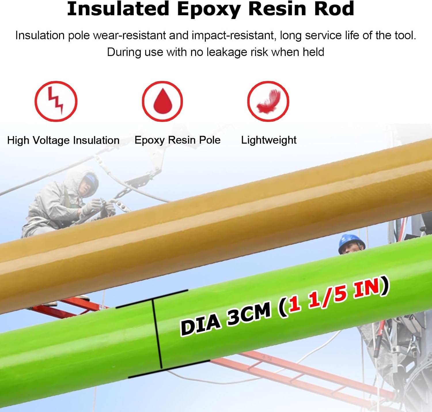 Telescoping Height Measuring Stick:The portable retractable high-voltage discharge rod is an essential tool for professionals conducting outdoor high-voltage tests. It is particularly effective in discharging accumulated charges after DC withstand voltage tests, significantly enhancing safety during operations. **Specifications:** - **Discharge Type:** Direct Discharge (ideal for small electrical charges) - **Material:** Durable epoxy resin rod, copper hook, and 4mm² copper wire - **Rod Diameter:** 3 cm (1 1/5 in) - **Voltage Ratings:** Available in 10 kV, 35 kV, 110 kV, and 220 kV - **Color Options:** Yellow and Green - **Length Variations:** - 10 kV: 1m (39.4 in) - 35 kV: 1.5m (59 in) - 110 kV: 2m (79 in) - 220 kV: 3m (118 in) - **Copper Wire Length:** Choose between 4m (13 ft) or 5m (16.4 ft) - **Key Features:** Lightweight and easy to transport, this tool is designed for safe and reliable high-voltage work. **Product Benefits:** - The epoxy insulation rod withstands temperatures from -30℃ to 150℃, ensuring no breakdown during high-voltage discharge. - Featuring a pure copper grounding clamp, it provides a secure grip for reliable grounding. - The included 4mm² copper wire is available in lengths that avoid the need for additional wiring around obstacles. - Its lightweight design allows for single-person handling and storage, making it ideal for use in substations, factories, laboratories, and various outdoor environments. - With a fold-resistant copper wire sheath, this product endures over 1000 folds without damage. **Package Includes:** - 1 High Voltage Discharge Rod and copper wire. **Safety Notes:** - Keep out of reach of children to prevent poking risks. - Always prioritize safety by using insulated gloves and maintaining a safe distance from energized equipment. Regular inspections before use are highly recommended. This high-voltage discharge rod is a reliable companion for electrical professionals, ensuring safety an